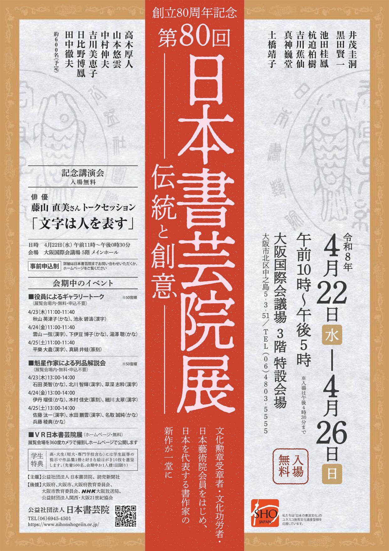文化勲章受章者・文化功労者・日本藝術院会員をはじめ、日本を代表する書作家の新作が一堂に