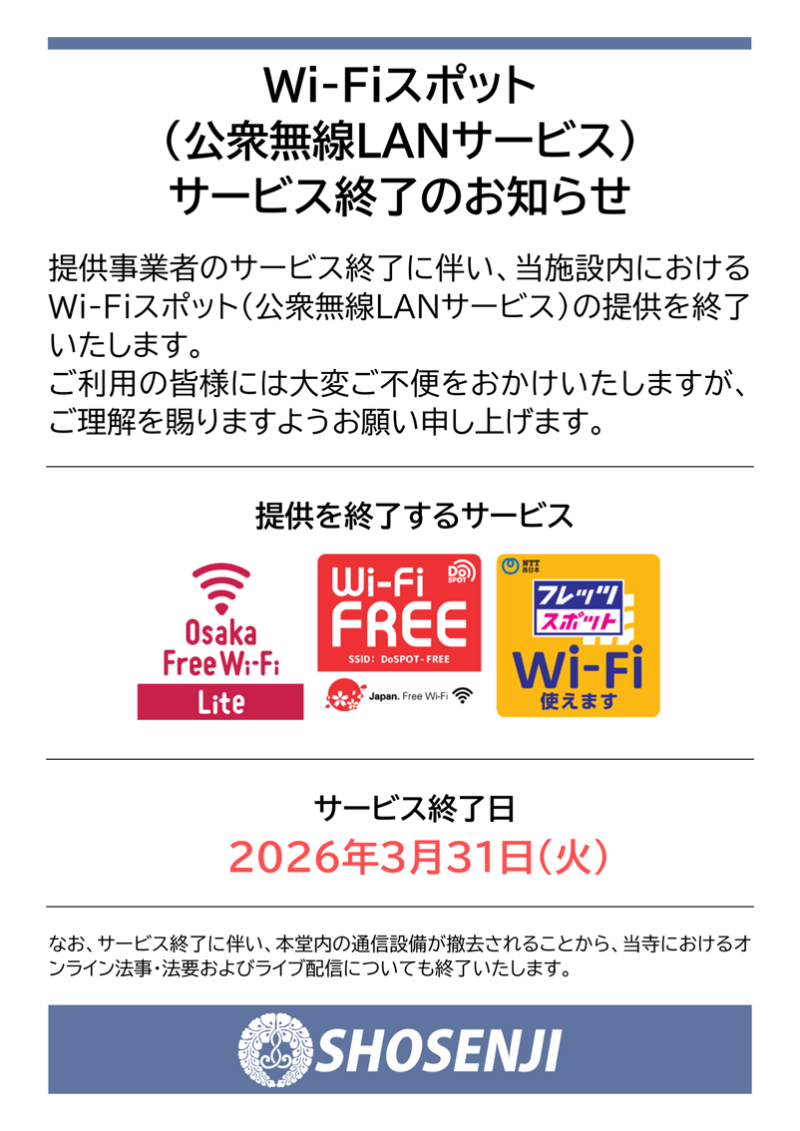 Wi-Fiスポット(公衆無線LANサービス)サービス終了のお知らせ